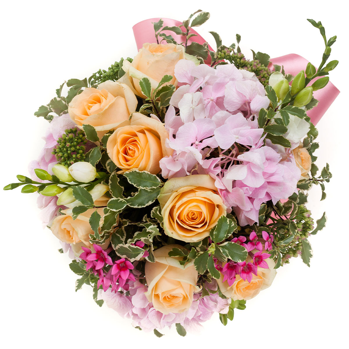 | Состав | Гортензии, Роза мисс пигги, Розы, Фрезии |